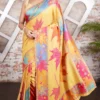 Nams Design Radiant Yellow Pashmina Kani Silk Saree with Maple Leaf 2025 Luxurious Winter Collection