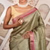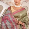 Dual-Tone Olive Green Pure Tussar Silk Saree with Hand-Painted Artistry and Checkered Zari | 2025 Nams Design Exclusive
