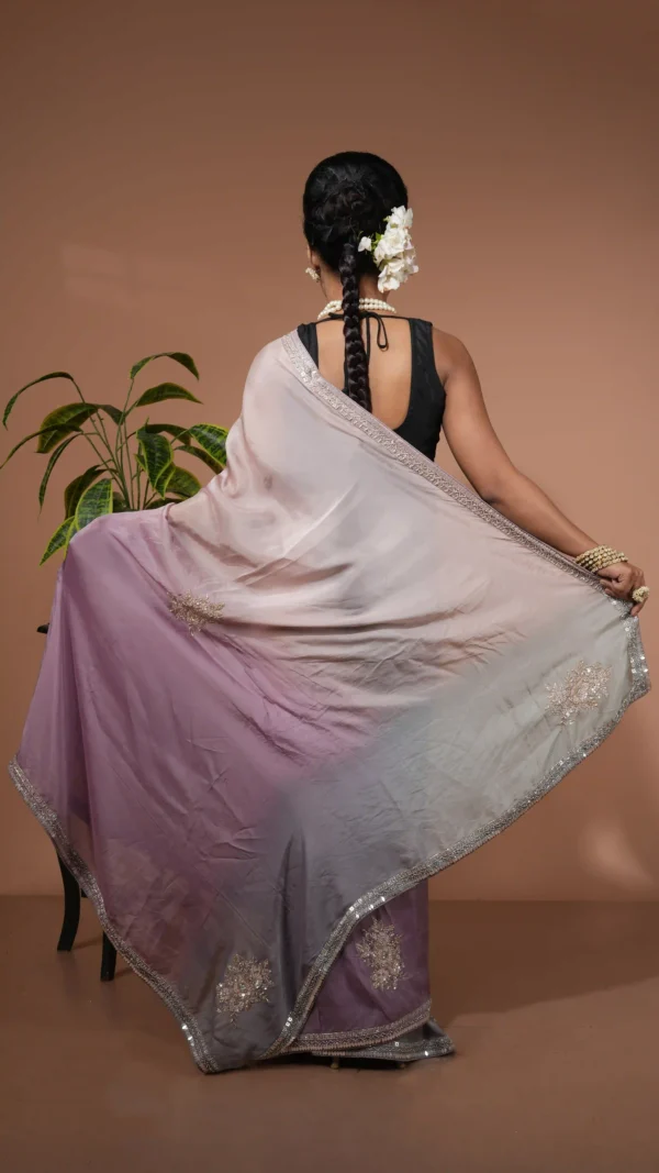Ombre Grey and Purple Designer Organza Saree with Sequin Embellishments | 2025 Winter Festive
