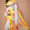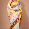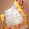 Nams Design Elegant White Cotton Silk Saree with Vibrant Multicolor Lambani Embroidery