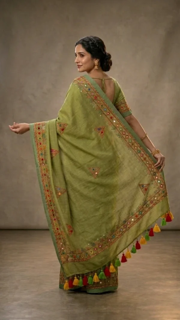 Pastel Green Khadi Cotton Lambani Saree with Vibrant Embroidery | 2026