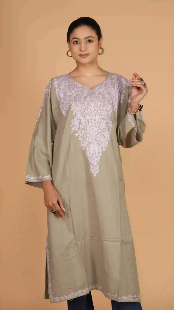 Beautiful Grey Kashmiri Phiran with Beautiful Aari Hand Embroidery | Ethnic Essentials 2026