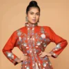 The Rustic Orange Kashmiri Aari Embroidered Pure Woolen Short Jacket is designed for the modern woman who seeks a fusion of warmth and high-fashion elegance. The “Aari” embroidery, performed with a specialized hooked needle, creates a raised, tactile texture that is both durable and visually stunning.