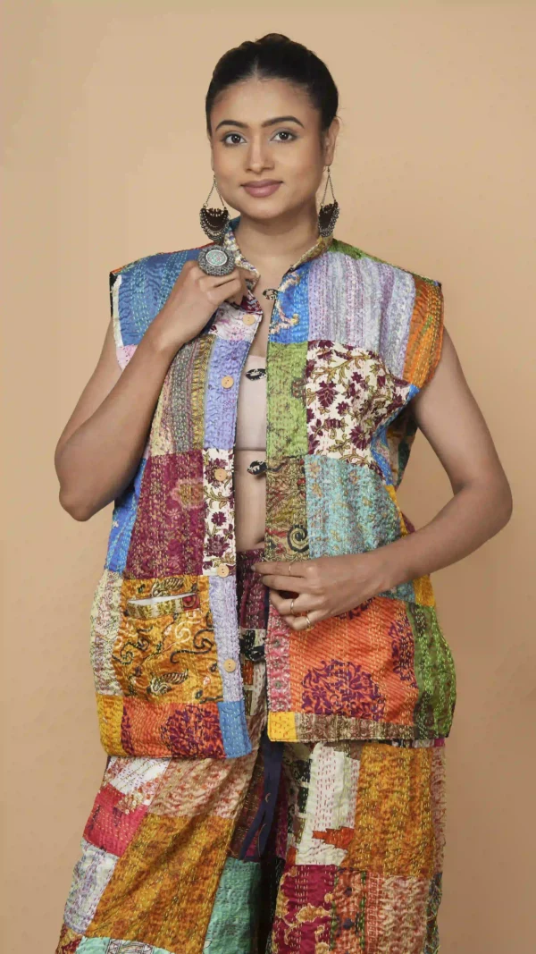 Authentic Handmade Patchwork Kantha Embroidery Cotton Jacket | Sustainable Ethnics 2026