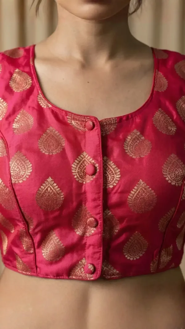 The Vibrant Red Sleeveless Silk Blouse is the ultimate wardrobe essential for the modern woman who cherishes traditional elegance. Crafted from premium, high-luster silk, this blouse offers a sophisticated silhouette that transitions effortlessly from festive weddings to intimate evening soirées.