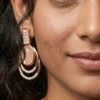 What makes the Tiered Rose Gold Crystal Earrings so unique is their lightweight, airy construction. The large piece provides a high-fashion silhouette without the heavy weight of traditional statement earrings. This earring set also features a polished finish that reflects light beautifully. It is the perfect piece for those who want to express their dreamy personality through their jewelry collection. Discover more about authentic Indian crafts at the Ministry of Textiles, India.