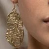 What makes the Gold Abstract Face Drop Earrings so unique is their lightweight, airy construction. The large abstract piece provides a high-fashion silhouette without the heavy weight of traditional statement earrings. This earring set features a polished finish that reflects light beautifully. It is the perfect piece for those who want to express their dreamy personality through their jewelry collection. Discover more about authentic Indian crafts at the Ministry of Textiles, India.