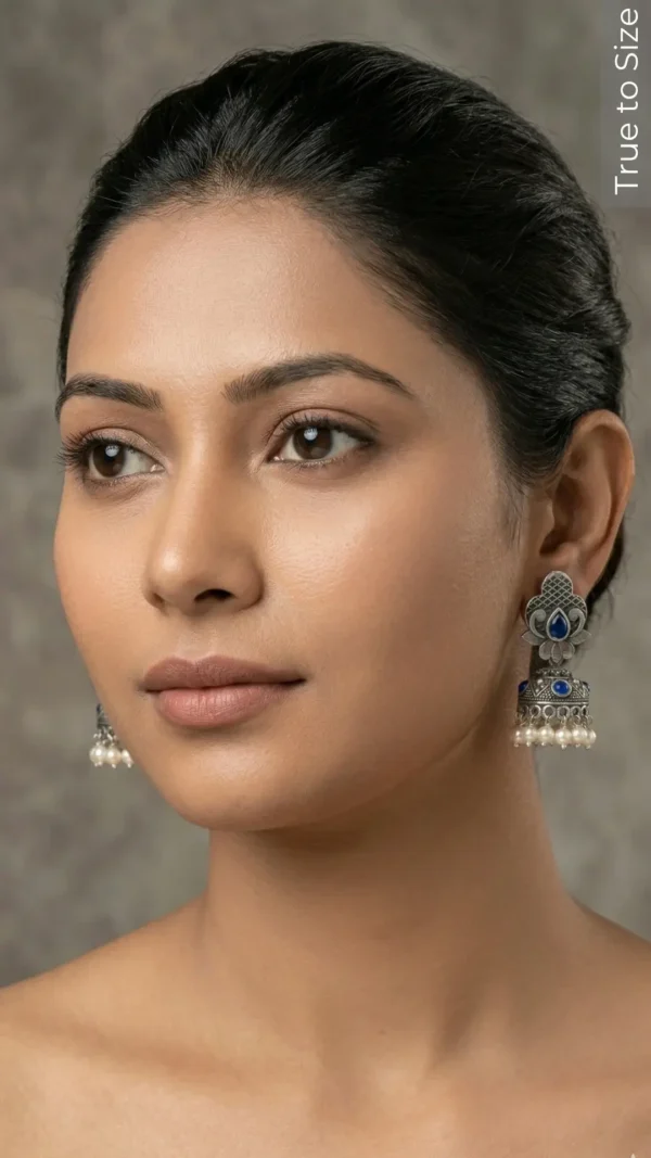 Never use silver dip on your Jashn Oxidised Jhumka Earrings, add makeup and perfume before putting on your jewelry.
