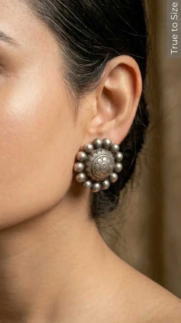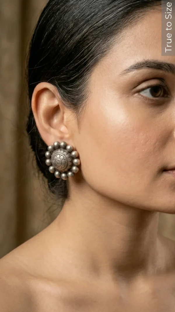 Pair your Apoorva Oxidised Mandala Earring with a grey blazer for The Modern Corporate look. Pair this with a Maroon Lehenga for The perfect Sangeet Night statement. Style it with a white cotton maxi dress and boots for a Weekend Brunch.